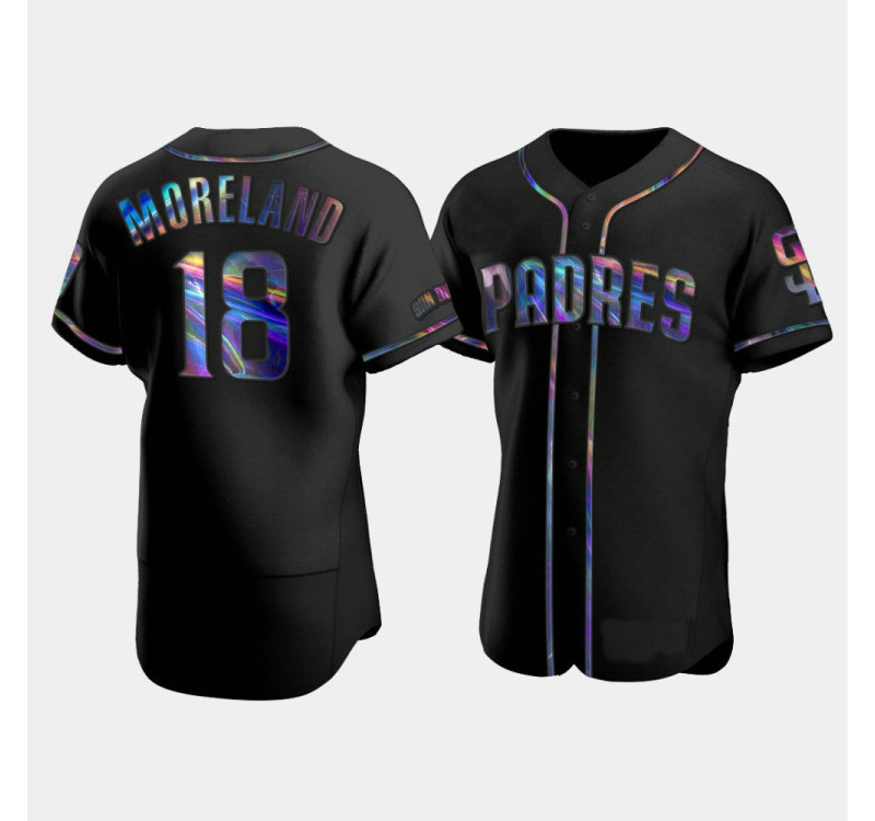 - Men's Padres #18 Mitch Moreland Black Authentic Golden Edition Holographic Jersey