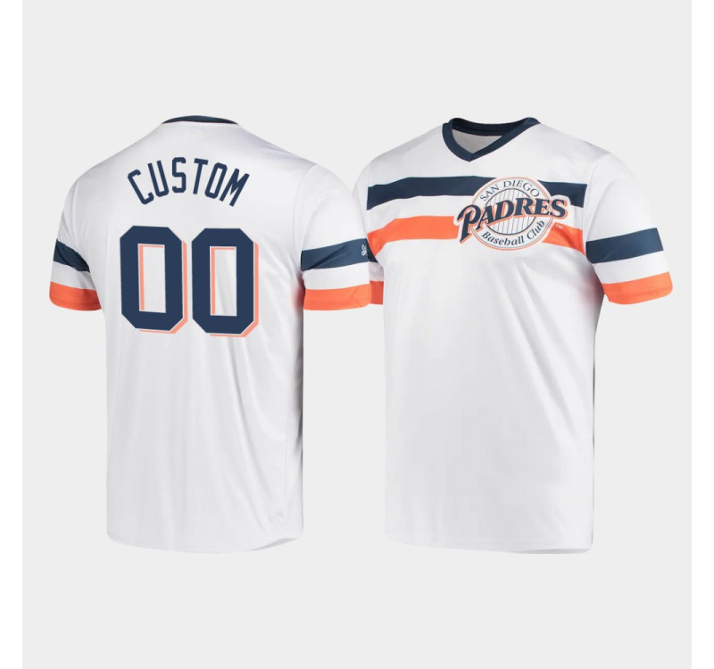 - Men's Padres Custom White Cooperstown Collection V - Neck Jersey