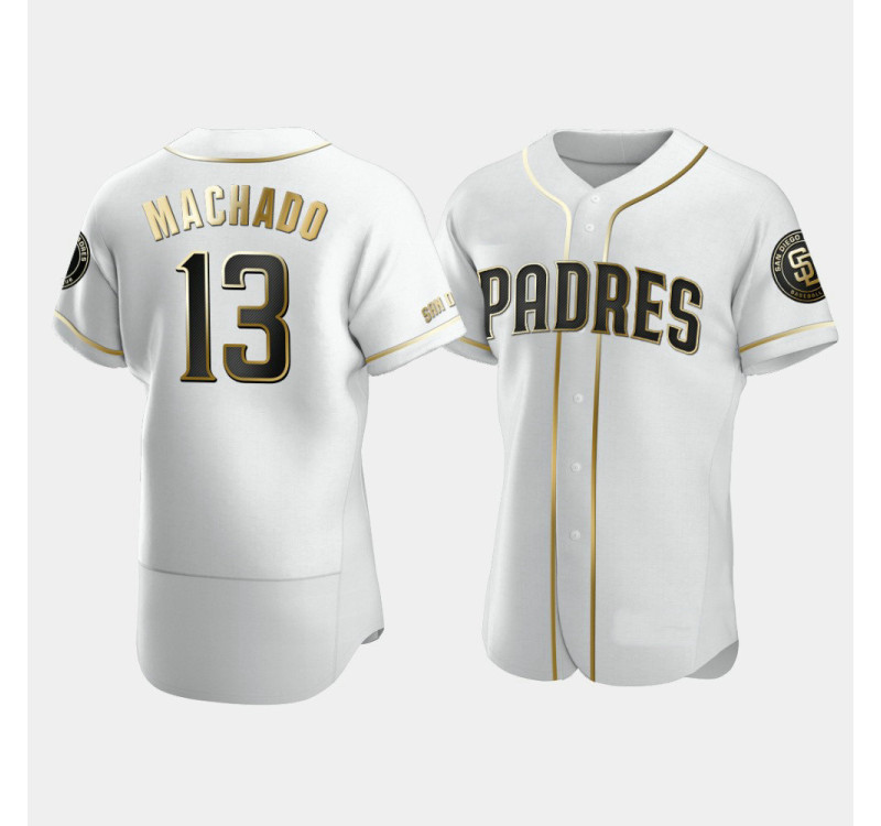 - Men's Padres #13 Manny Machado White Golden Edition Authentic Jersey
