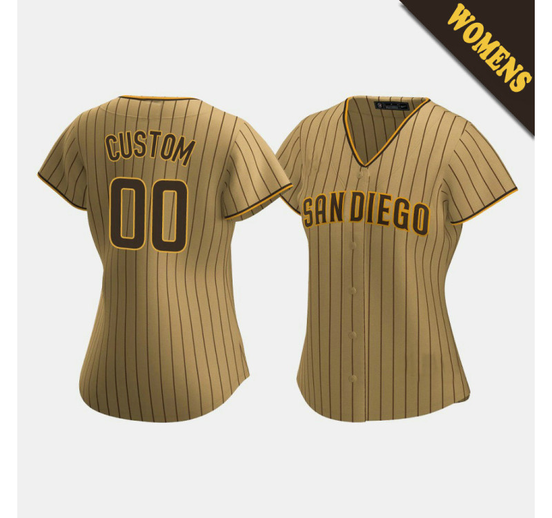 • Women's San Diego Padres Custom #00 Tan Brown Replica Alternate Jersey